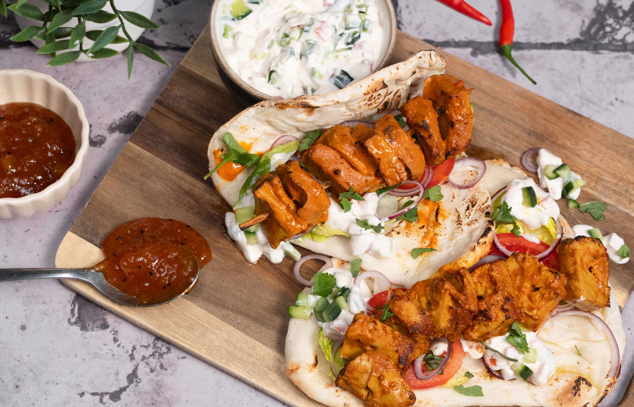 Naan Wrap mit planted.chicken Skewers Tandoori